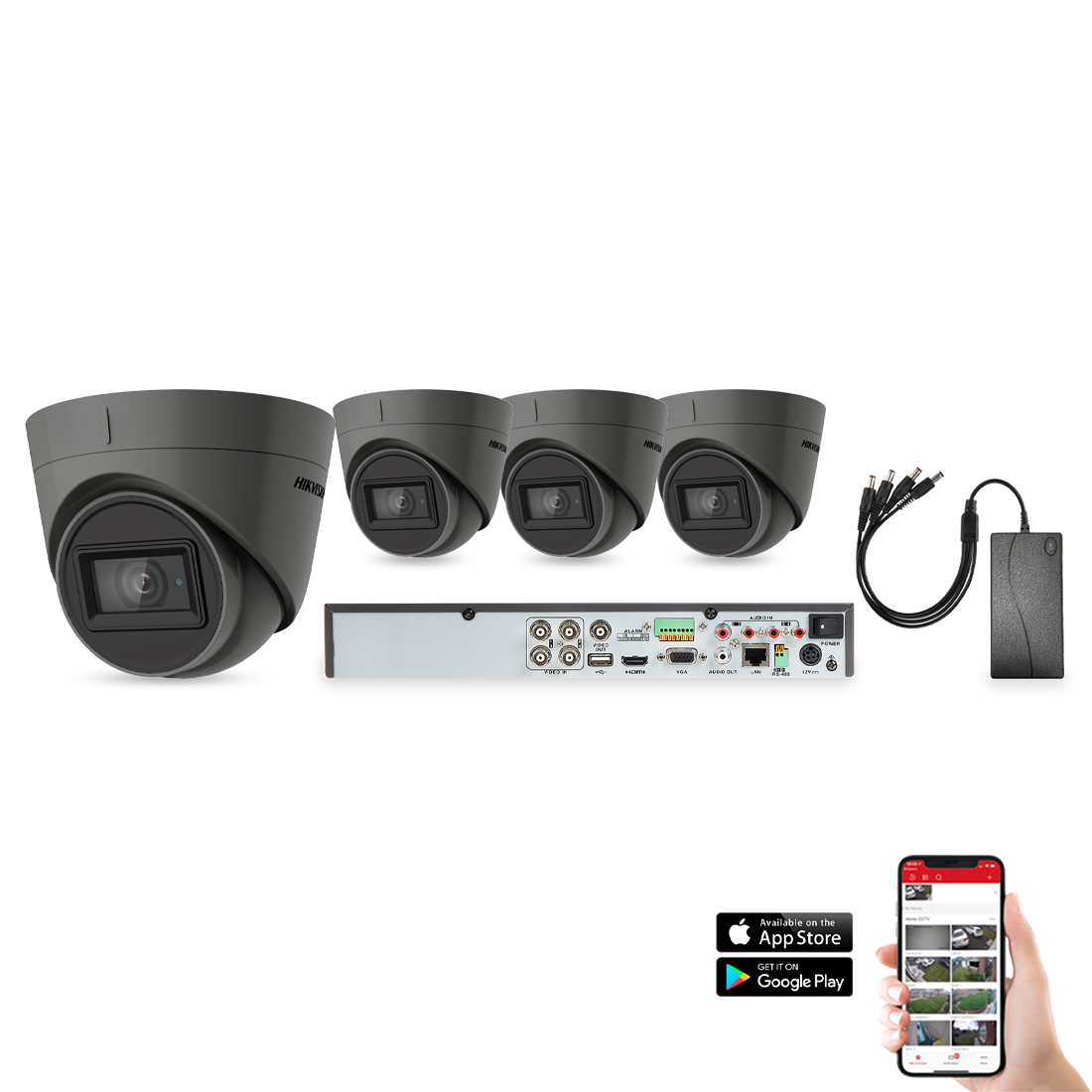 Hikvision 4 Camera 4ch 4K 8MP 60M CCTV Kit - Grey (HIK-KIT-TVI-8MP-60M-4-GR)
