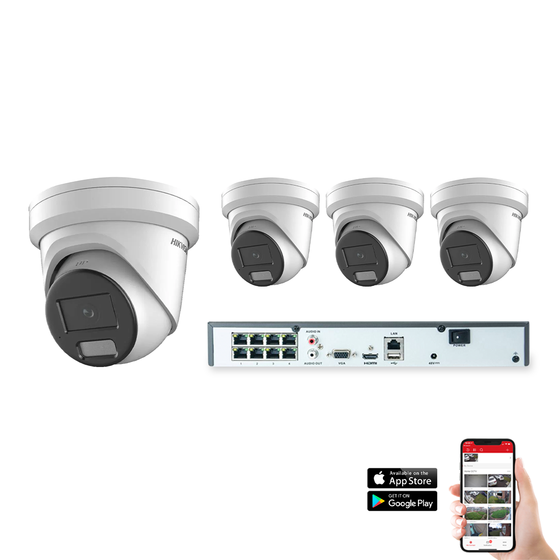 Remote viewing from your mobile device with Hikvision Cloud. The included DVR is designed for use with our innovative hassle free HikConnect app. Using Hikvision cloud, you can quickly and easily view your security system remotely from your smartphone or tablet. There are no difficult port forwarding or other complicated network setups either. Simply download the free app, register your details and scan the QR code on the DVR. You can then view your cameras, playback recordings and receive motion notifications from anywhere in the world using the Hikvision IOS or Android app.